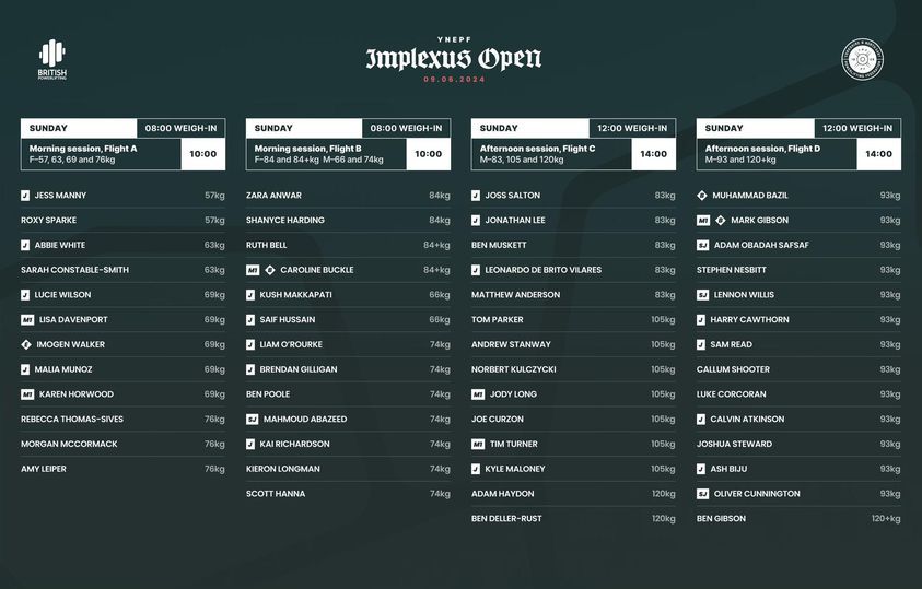 If you need to change your weight class after you submit your entry form, you must contact Ynepfentries@gmail.com before the competition closure date. After this date, you will remain in your initially designated weight class.